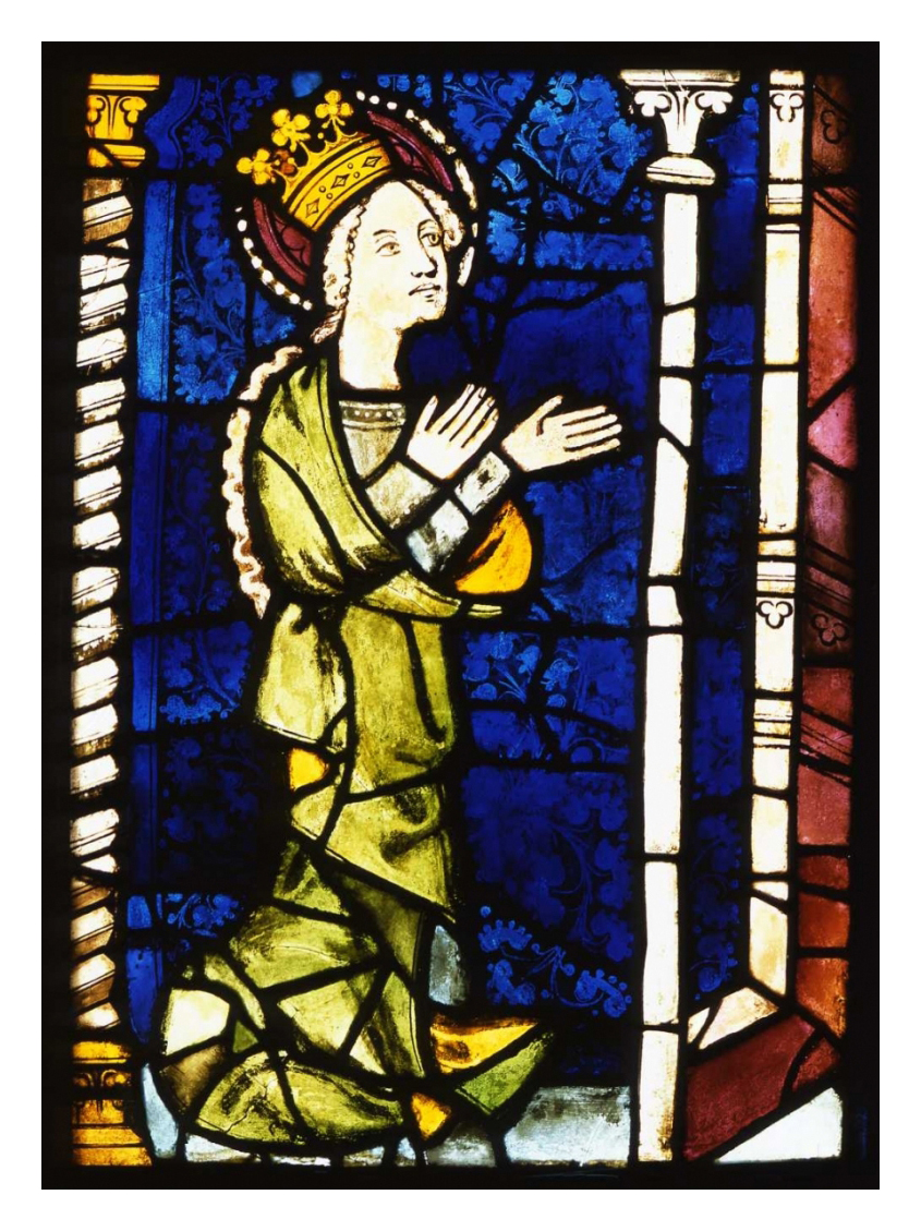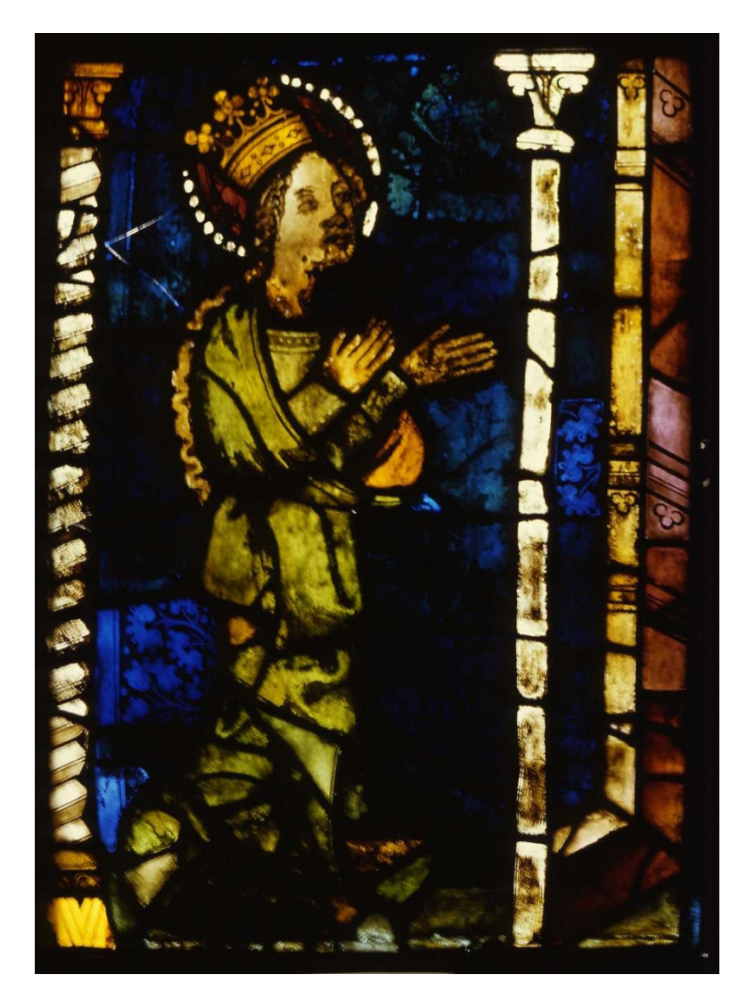 Die Bilder zeigen den Zustand einer Scheibe aus dem Katharinenfenster (Feld nV, 10a) im Vorzustand und nach der Restaurierung